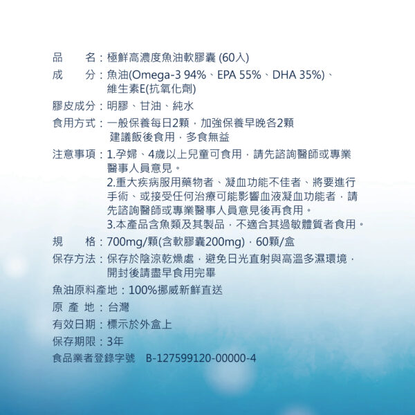 高濃度魚油是無多餘添加成分,全家大小0-99歲皆可食用